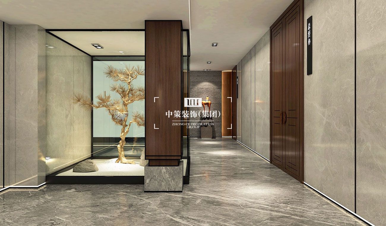 在整个空间中加入了许多的景,利用了借景抒情的手法来营造这个空间。其中石材、木材等天然材料的结合让空间跟有一种厚重感。每个空间用途分明,根据每个空间不同的用途和客户的需求都做了独立的设计,结合个性鲜明的软装搭配,打造出高端而优雅的办公空间。