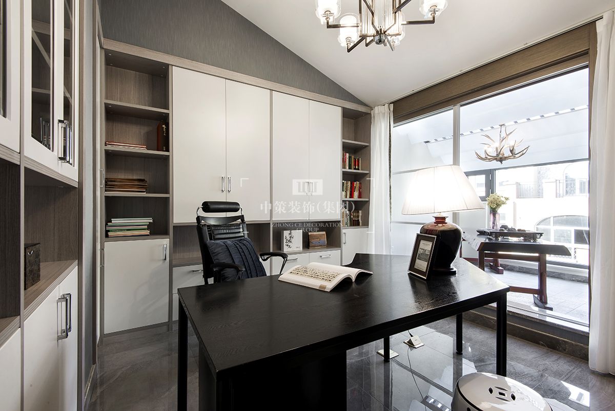 书房是主人在家办公的场所,木饰面与白色相结合的书柜,让整个空间散发出稳重质朴的气质。各类书籍及艺术品摆件透露出不拘一格的时尚品味。