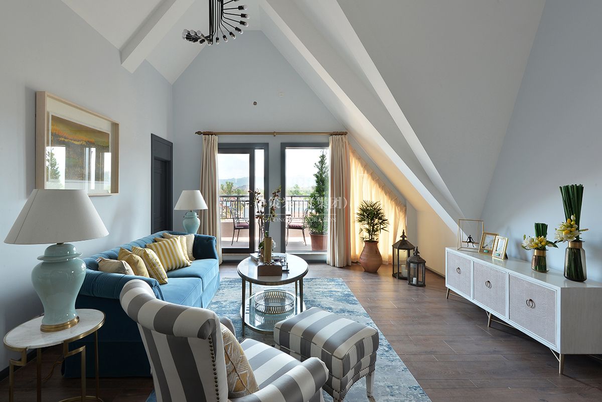起居室跳跃的色彩带来轻松活泼的韵律,清丽的设计则带来舒缓的抚慰,双起居室的设计让度假生活随时切换心情。餐厅设计打破常规的餐椅,让美味与舒适完美融合。象牙白与淡蓝为卧室带来柔软氛围,成为舒眠的安适所在。蓝天微风与阳光轻撒露台,瞬间让身心回到灵性的自由。