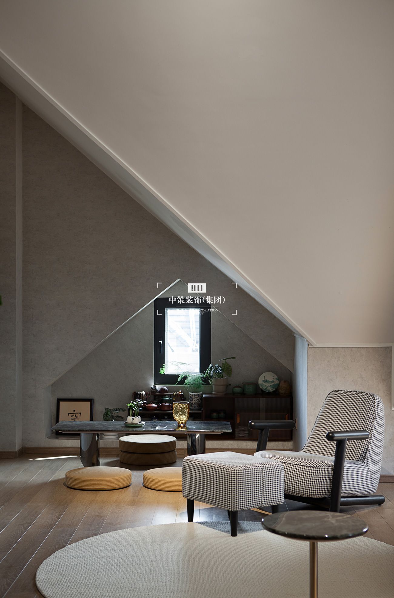 ①三楼:顶楼呈斜尖之状,大梁林立。设计之时,将那光线黯淡之处精心打造成储物间以及小朋友们的神秘基地。而光线充沛之所,则摇身一变,成为小型音乐厅、书房与会客区域。姐姐轻抚钢琴,妹妹拉动小提琴,一场别开生面的小型音乐会便在此处缓缓拉开帷幕。